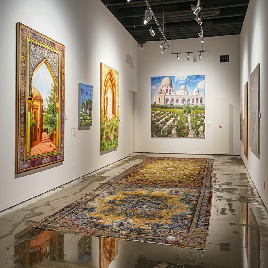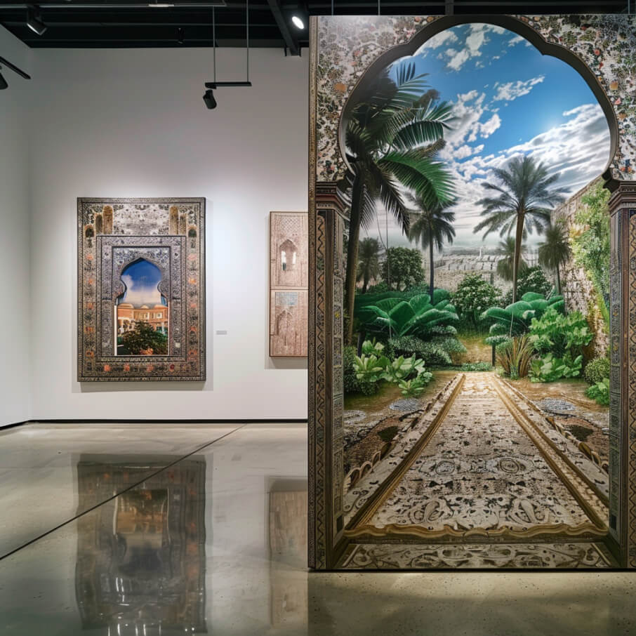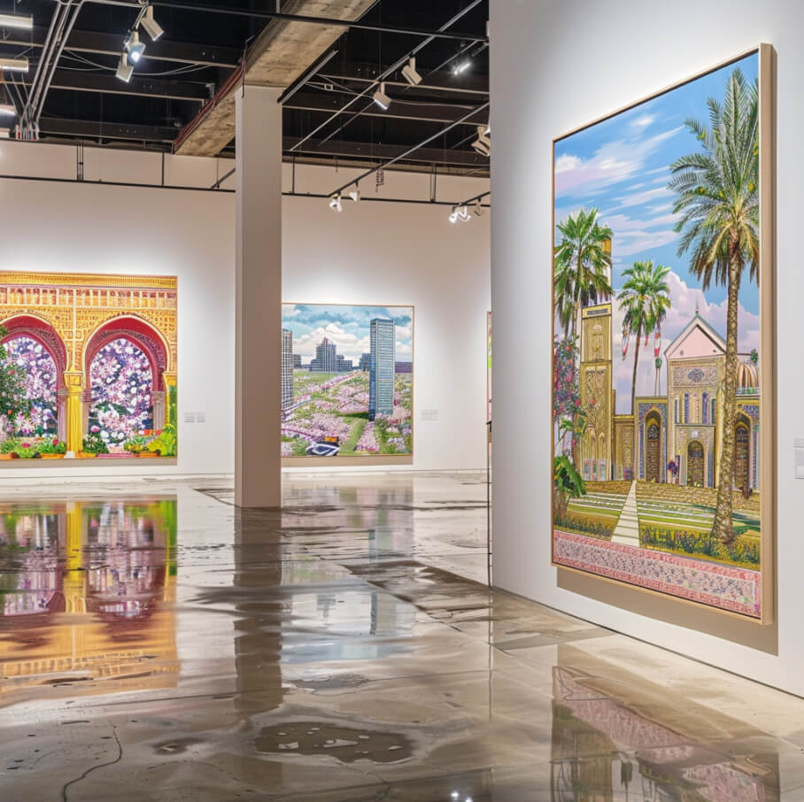 This exhibition explores how both artists address the theme of environment, albeit through vastly different lenses. Vanessa Marandi's paintings are lush and expansive, filled with colors that pulse with the life of the Brazilian rainforest. Her works reflect a spontaneity and organic chaos that is intrinsic to nature. Conversely, Zakaria Al-Shammari's works bring a sense of order and history, using the rigid structures of architecture to tell stories of human civilizations.