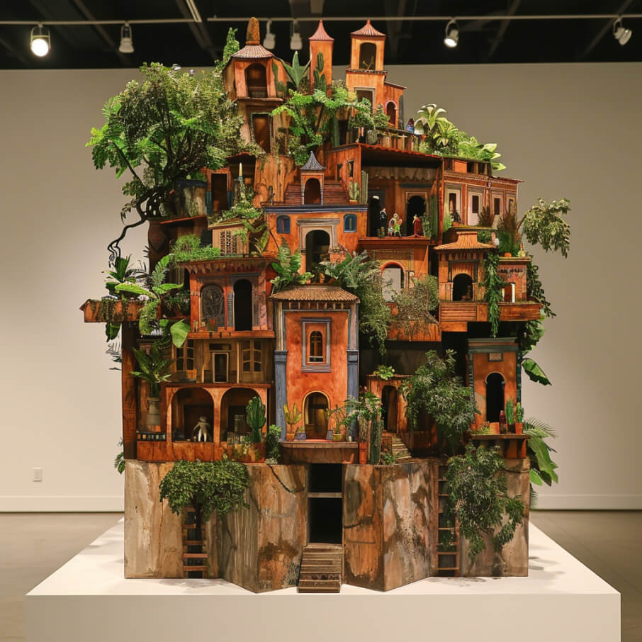 In 'Confluence: Nature and Structure', the artworks not only stand alone but also interact, creating a narrative about the influence of geography on cultural identity. Through their distinct mediums and subjects, both artists communicate powerful messages about how environments shape personal and collective identities.